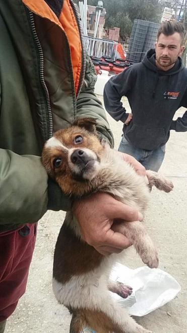 Σύμφωνα με την Ιωάννα Γιαννακοπούλου, αυτο το κουταβάκι βρέθηκε μέσα σε δεμένο (!) σάκο και μάλιστα τα ποδαράκια του είχαν τραυματιστεί σοβαρά. Ενδεχομένως να τα είχε πατήσει όποιο αυτοκίνητο ή μεγάλο φορτηγό χωρίς να ξέρει τί είχε μέσα ο σάκος που ήταν πεταμένος στο δρόμο.