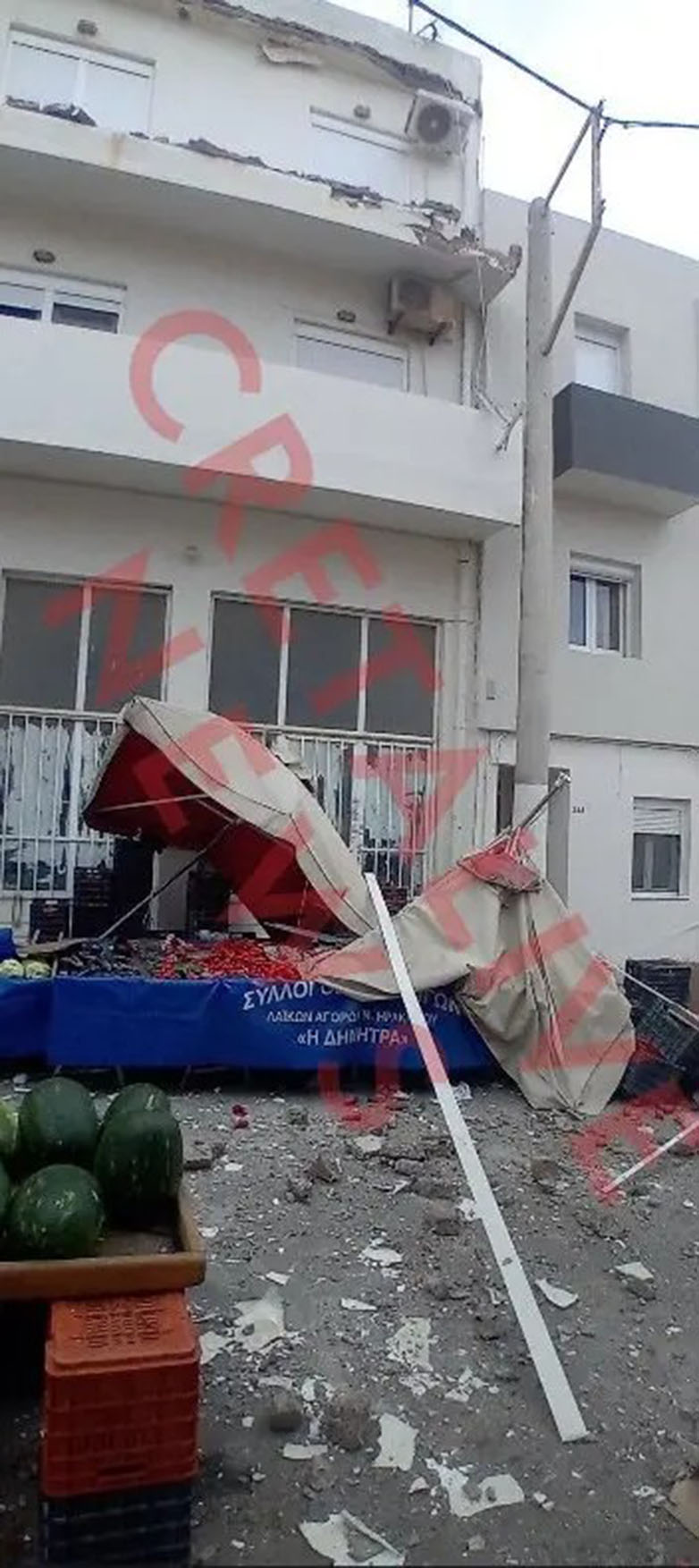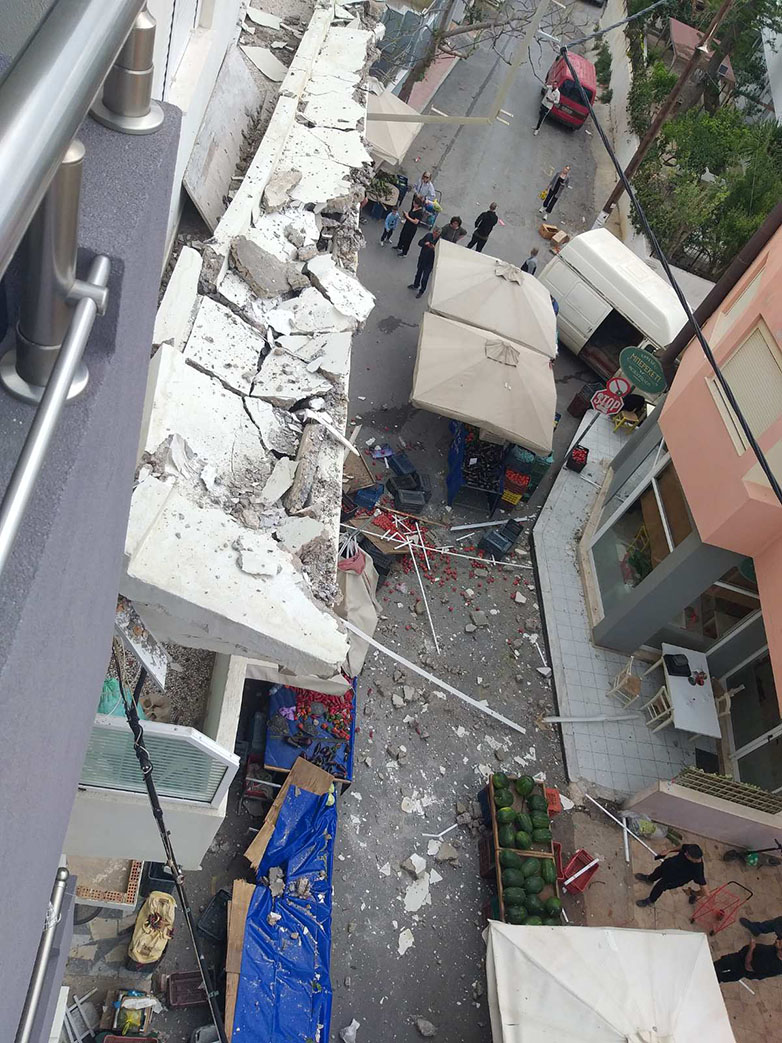 Σύμφωνα με το Cretalive.gr, μεγάλο τμήμα μπαλκονιού από διώροφη οικοδομή, έπεσε πάνω σε πάγκο Λαϊκής αγοράς, στα Καμίνια.