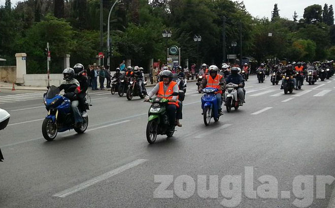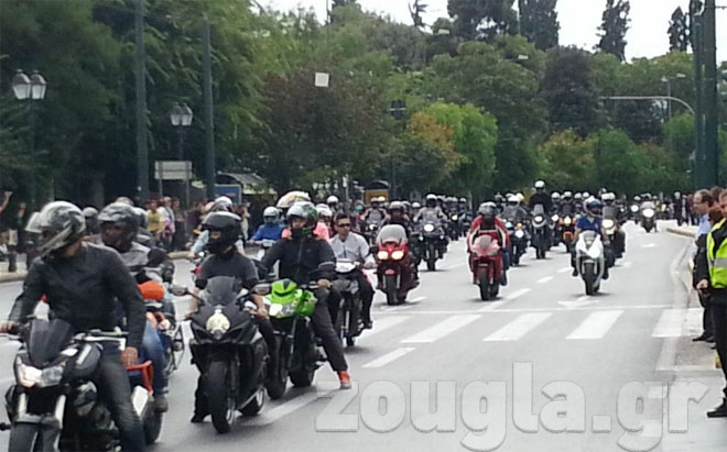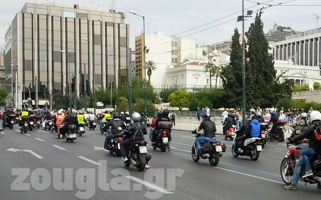 Μια από τις μεγαλύτερες πορείες πραγματοποίησαν το μεσημέρι της Κυριακής οι «Αγανακτισμένοι Μοτοσικλετιστές», που ξεκίνησαν στις 12 το μεσημέρι από το λιμάνι του Πειραιά (απέναντι από τον ηλεκτρικό σταθμό) και μισή ώρα αργότερα κατέφθασαν στο Σύνταγμα.