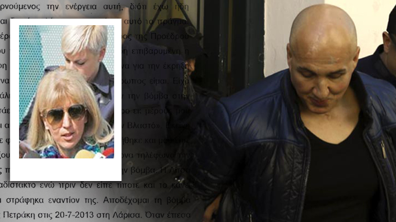 Ο βαρυποινίτης κατηγορεί και τον σύζυγο της Λίτσας πως ήταν εκείνος που είχε φτιάξει τη βόμβα η οποία τοποθετήθηκε στην εισαγγελέα Τρικάλων κ. Πετράκη λέγοντας πως «ο μ@@@….πήγε και έβαλε 20 κιλά εκρηκτικά», ενώ ο Βλαστός του είχε πει να βάλει μόνο 2 κιλά για να τη «φοβίσουν». Ο «άχρηστος», κατά τον Βλαστό, σύζυγος της εξαδέλφης του είχε αναλάβει και το ξέπλυμα των χρημάτων, ενώ ακράδαντη είναι η πεποίθησή του, πως εκείνος έχει κρύψει τα χρήματα που η εξαδέλφη του ισχυρίζεται ότι έχασε.