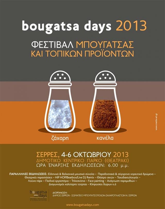 Το σωματείο μπουγατσοποιών – ζαχαροπλαστών Σερρών σε συνεργασία με το Δήμο, διοργανώνουν το τρίτο φεστιβάλ του συλλόγου ζαχαροπλαστών (το δεύτερο για την μπουγάτσα) «Φεστιβάλ μπουγάτσας και τοπικών προϊόντων» στο Δημοτικό Κεντρικό Πάρκο (θεατράκι)…