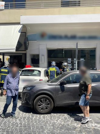 Μεγάλη αναστάτωση προκλήθηκε το μεσημέρι της Παρασκευής 09/08 στο κέντρο του Ηρακλείου στην Κρήτη -στην περιοχή της Χανιώπορτας- όταν επιβατικό αυτοκίνητο έπεσε επάνω σε βιτρίνα καταστήματος.