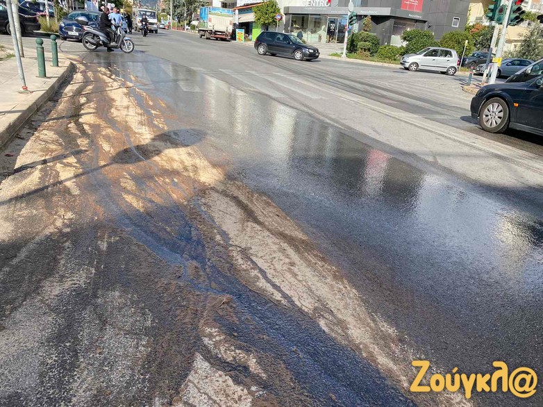 Αυτό είχε ως αποτέλεσμα, εκατοντάδες λίτρα από το καύσιμο να έχουν χυθεί στο δρόμο προκαλώντας σοβαρά προβλήματα.