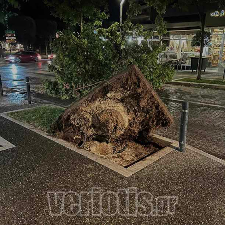 Όπως αναφέρει το veriotis.gr, από τον δυνατό άνεμο σημειώθηκαν πτώσεις δέντρων σε διάφορα σημεία εντός και εκτός πόλης. Ένα μεγάλο δέντρο στην οδό Ελιάς κοντά στην πλατεία της πόλης, «ξηλώθηκε» και έπεσε στο οδόστρωμα.