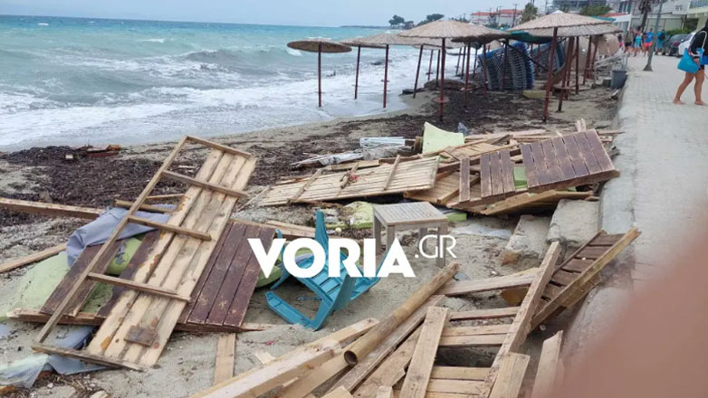 Την ίδια ώρα καταστηματάρχες της περιοχής που είχαν ομπρέλες και ξαπλώστρες στην άμμο, τις είδαν να τις παρασύρει το νερό. «Είναι λογικό όσοι ήταν στημένοι πολύ κοντά στη θάλασσα να τους τα πάρει το κύμα λόγω του δυνατού αέρα», επισήμανε η κ. Χαλκιά.