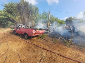 Στην περιοχή έσπευσαν έξι οχήματα της Π.Υ. Χανίων με 13 πυροσβέστες.
