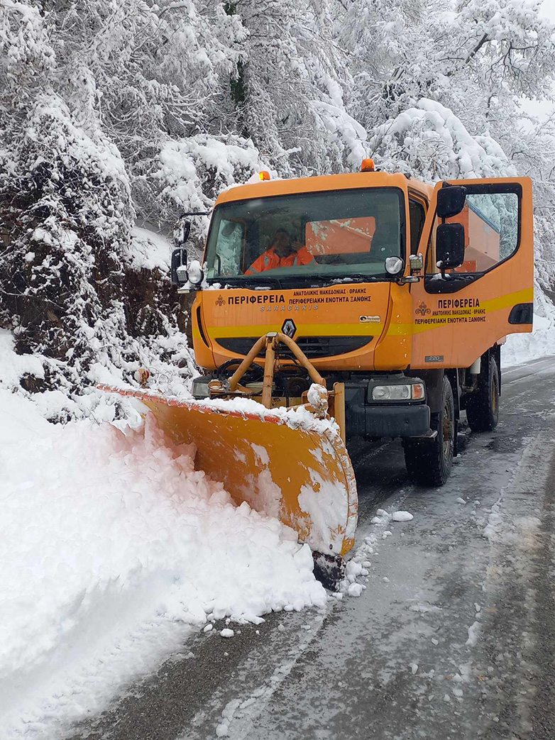 Προσπάθειες για να παραμείνει ανοιχτός ο δρόμος που οδηγεί προς τη Βουλγαρία καταβάλλει η Περιφερειακή Ενότητα Ξάνθης, η οποία είδε τις ορεινές περιοχές της να ντύνονται στα «λευκά».