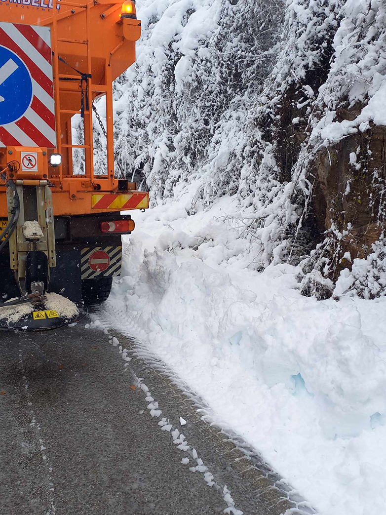 Εκχιονιστικά μηχανήματα βρίσκονται επί ποδός και οι υπάλληλοι απομακρύνουν το χιόνι, ώστε να πραγματοποιείται με ασφάλεια η κυκλοφορία των οχημάτων.