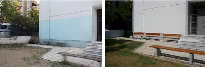– εργασίες σε προαύλιους χώρους (τοποθέτηση και διαμόρφωση καθιστικών, φύτευση πρασίνου, επισκευή σκεπάστρων, κ.ά.)