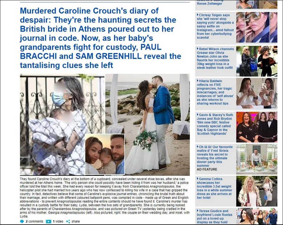 H βρετανική Daily Mail με σημερινό της δημοσίευμα, επικαλείται ένα άγνωστο έως τώρα ημερολόγιο της Καρολάιν, το οποίο, βρέθηκε «θαμμένο» κάτω από κουτιά παπουτσιών στο σπίτι του ζευγαριού στα Γλυκά Νερά.