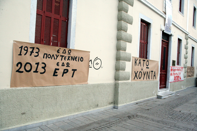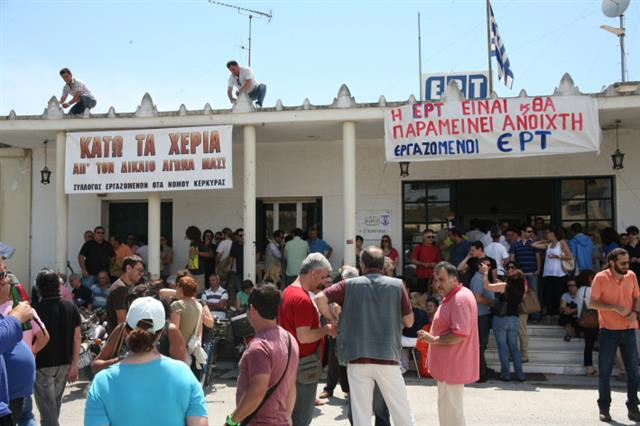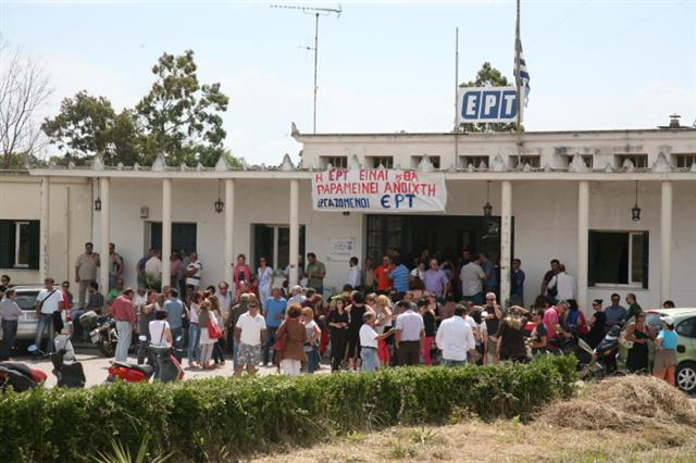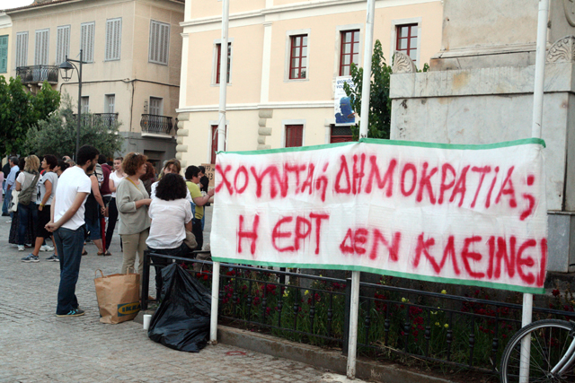 Πολίτες σε Θεσσαλονίκη, Πάτρα, Κρήτη, Nαύπλιο και αλλού συγκεντρώθηκαν έξω από τα κτήρια-παραρτήματα της ΕΡΤ και εξέφρασαν την αντίθεσή τους στην ξαφνική αυτή απόφαση της κυβέρνησης.