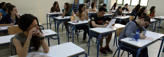 Την Παρασκευή ξεκίνησε η εξεταστική διαδικασία με το μάθημα της Νεοελληνικής Γλώσσας, όπου οι μαθητές κλήθηκαν να αναπτύξουν ένα συνδυαστικό θέμα για το περιβάλλον, το Διαδίκτυο και την αποξένωση των ανθρώπων μέσω του Ίντερνετ. Ο υπουργός Παιδείας ευχαρίστησε τους εκπαιδευτικούς για την υποδειγματική άσκηση των καθηκόντων τους, αφού πρώτα φρόντισε να τους «ντύσει στο χακί», πριν καν προκηρυχθεί οποιαδήποτε κινητοποίηση.