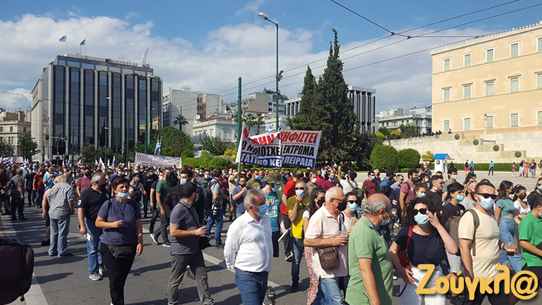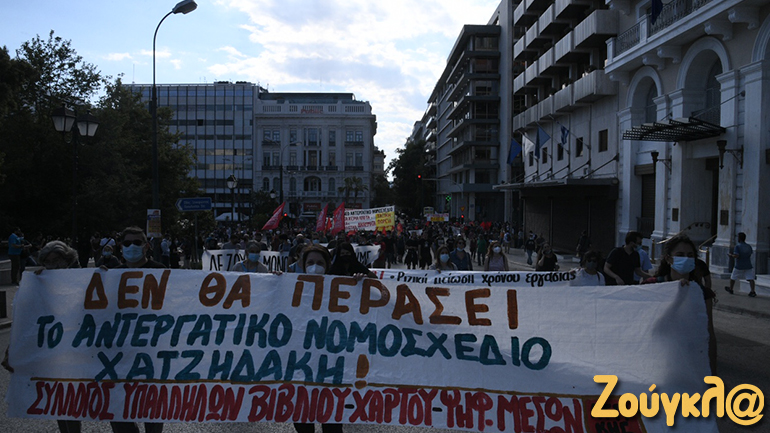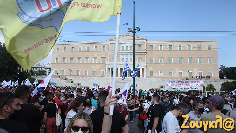 Η ΑΔΕΔΥ, το ΕΚΑ, εργατικά σωματεία, σύλλογοι εργαζομένων, φορείς και οργανώσεις της Αριστεράς, συγκεντρώθηκαν λίγο μετά τις 6μμ, στο Σύνταγμα, διεκδικώντας την απόσυρση του νομοσχεδίου. Με κεντρικό σύνθημα «Κάτω τα χέρια από το οκτάωρο» και «να μην περάσει το αντεργατικό νομοσχέδιο», οι διαδηλωτές και οι διαδηλώτριες αντιδρούν σε μια σειρά από τις αλλαγές που προβλέπονται.