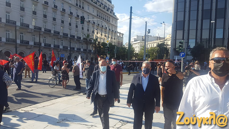 Στη διαμαρτυρία στο Σύνταγμα συμμετέχει και ο γενικός γραμματέας του ΚΚΕ, Δημήτρης Κουτσούμπας:
