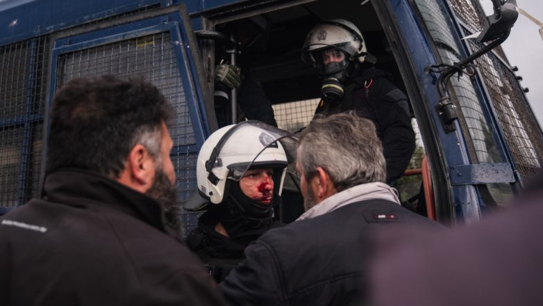 Στιγμές έντασης πλάι στην κλούβα των ΜΑΤ