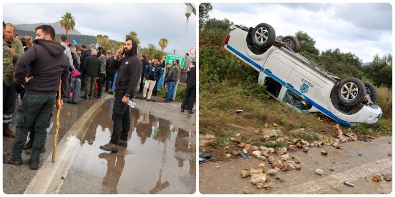 Το περιπολικό δεν γλίτωσε από την μανία των κινητοποιήσεων στα Χανιά