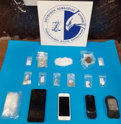Στην κατοχή τους βρέθηκαν συνολικά και κατασχέθηκαν: ηρωίνη βάρους 24,4- γραμμαρίων, κρυσταλλική μεθαμφεταμίνη βάρους -15,7- γραμμαρίων, μικροποσότητα κοκαΐνης, 35 φαρμακευτικά σκευάσματα, ηλεκτρονική ζυγαριά ακριβείας, τρεις συσκευές κινητών τηλεφώνων και πλήθος νάιλον συσκευασιών.