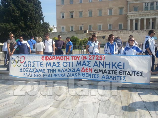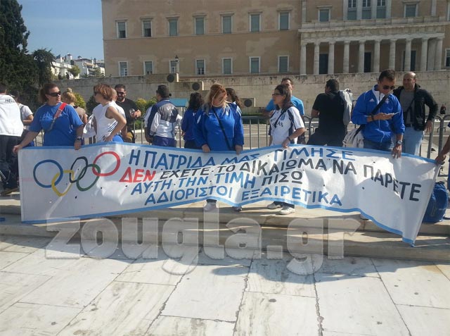 Συγκέντρωση διαμαρτυρίας πραγματοποίησαν το πρωί έξω από το Υπουργείο Διοικητικής Μεταρρύθμισης Ολυμπιονίκες, οι οποίοι κινδυνεύουν να τεθούν σε καθεστώς διαθεσιμότητας στο πλαίσιο του β’ κύκλου κινητικότητας στον δημόσιο τομέα.