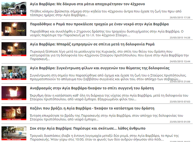 Δεν έχει τέλος το δράμα που εκτυλίσσεται στην Αγία Βαρβάρα, μετά τη δολοφονία του 42χρονου Ρομά. Μετά τα επεισόδια που προκλήθηκαν και τον εμπρησμό σπιτιών, ένας νεαρός, φίλος του θύματος, δεν άντεξε τον χαμό του και το βράδυ της Δευτέρας έκανε απόπειρα αυτοκτονίας, πέφτοντας από τον δεύτερο όροφο της πολυκατοικίας που κατοικεί (φωτογραφία).
