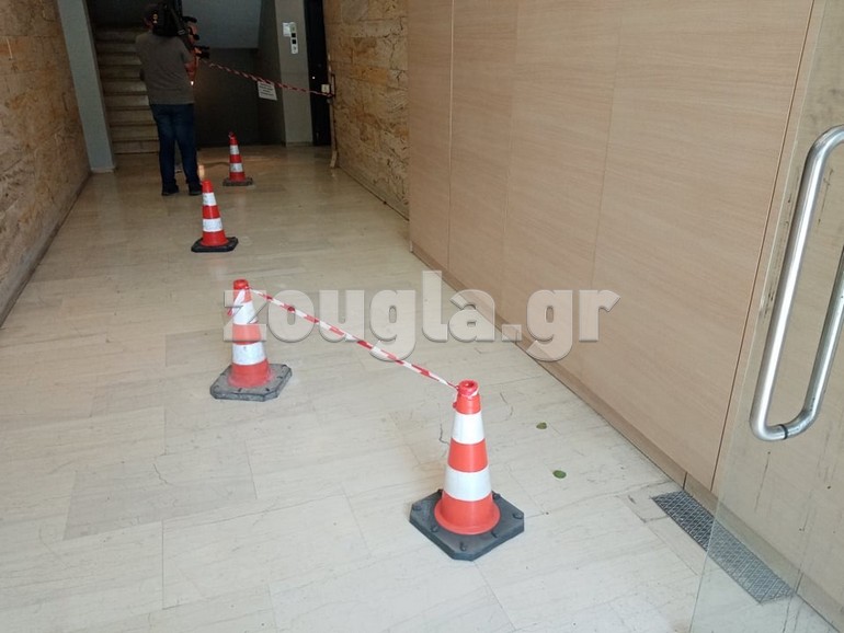 Στη συνέχεια η 34χρονη βγαίνει υποβασταζόμενη από το κτήριο, όπου στεγάζεται το γραφείο της, και οδηγείται σε γειτονικό φαρμακείο.