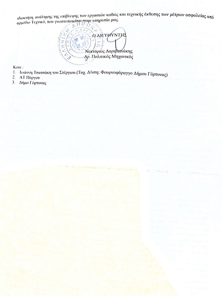 Επίσης το επίσημο έγγραφο με το οποίο απορρίπτεται ως εκπρόθεσμη η προσφυγή του ιδιοκτήτη του οικήματος κατά της απόφασης κατεδάφισης και τον καλεί να προβεί άμεσα στις απαιτούμενες ενέργειες.