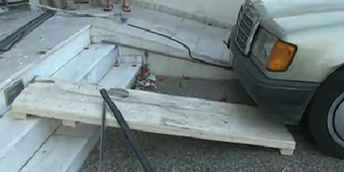 Συγκεκριμένα αφού τοποθέτησαν μια ξύλινη σανίδα στα σκαλοπάτια της εισόδου του κοσμηματοπωλείου, έθεσαν σε κίνηση το αυτοκίνητο, το οποίο πάτησε πάνω στη σανίδα, πέφτοντας στη συνέχεια με δύναμη στο ρολό ασφαλείας. Από τη σύγκρουση υποχώρησαν τόσο η πόρτα όσο και το ρολό ασφαλείας, αφήνοντας ελεύθερο το πεδίο στους δράστες.