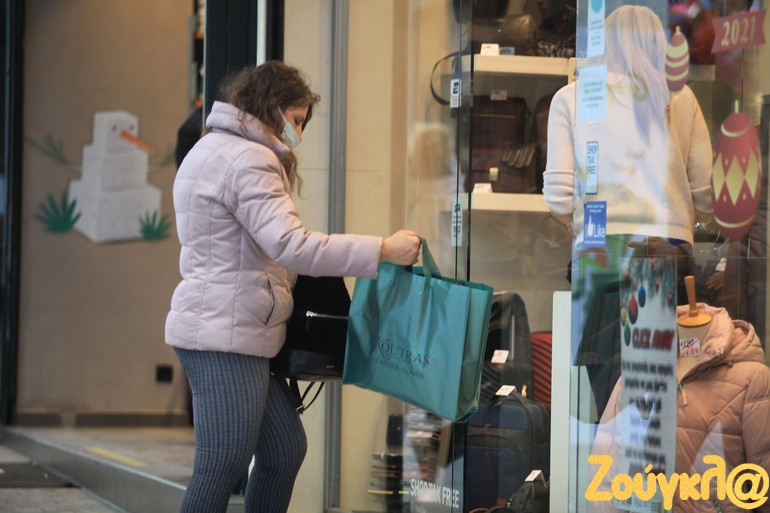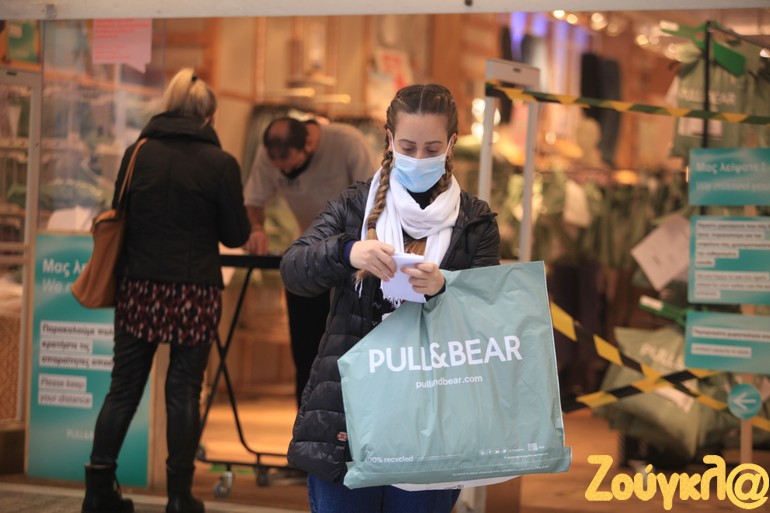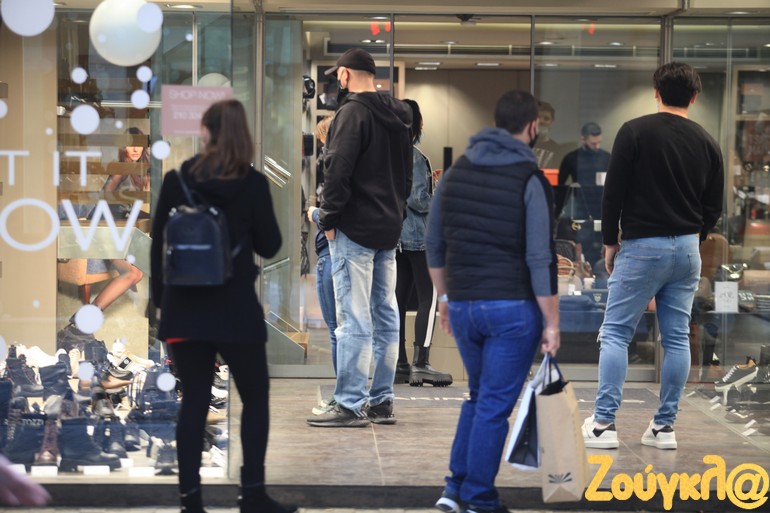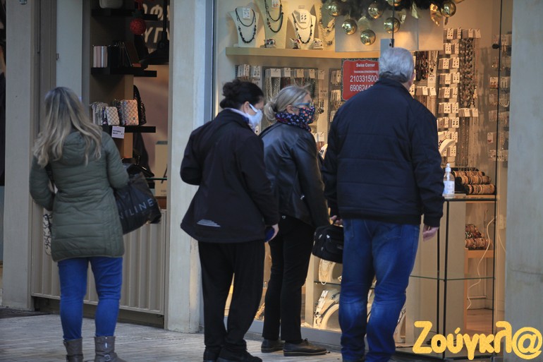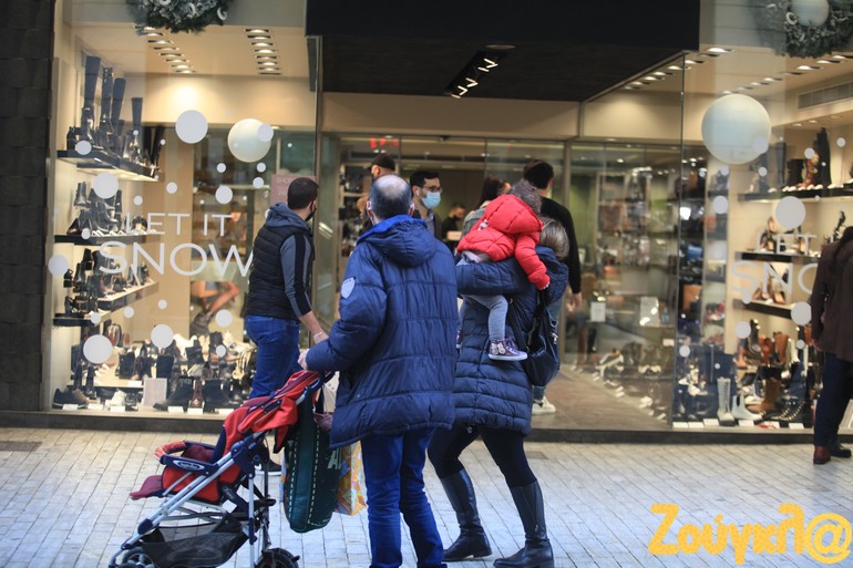 Οι πολίτες παρά το lockdown ξεχύθηκαν για τα ψώνια τους στην οδό Ερμού από το πρωί της παραμονής Πρωτοχρονιάς: