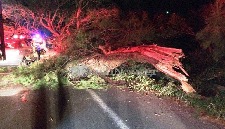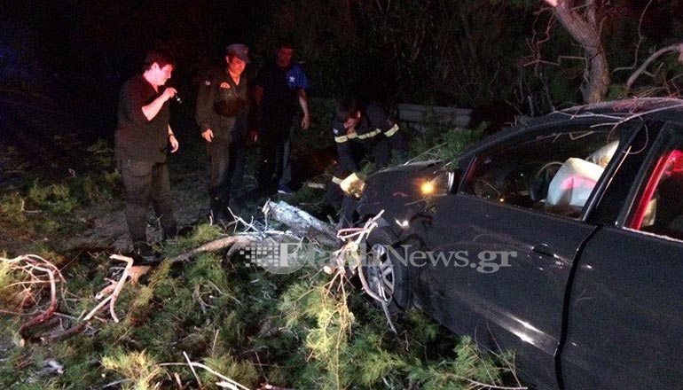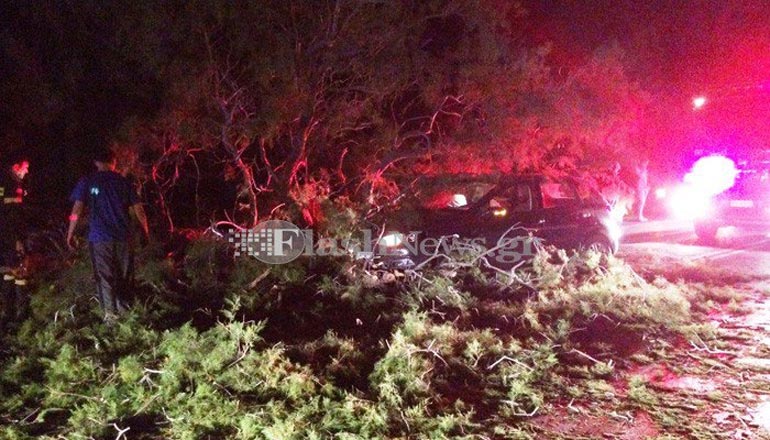 Ένα μεγάλο δέντρο έπεσε πάνω σε διερχόμενο αυτοκίνητο.