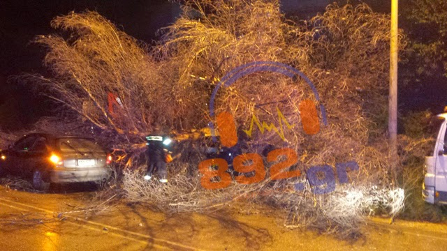 Τύχη βουνό είχε τα ξημερώματα ο οδηγός ενός Ι.Χ., που είδε με τρόμο ένα δέντρο να πέφτει στο μπροστινό τμήμα του οχήματός του.