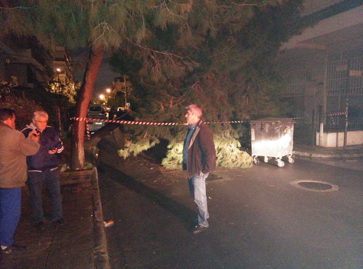 Πτώση δέντρου σημειώθηκε το βράδυ της Παρασκευής στη συμβολή των οδών Ρήγα Φεραίου και Πατρόκλου, στο Μοσχάτο, έπειτα από τις συνεχείς βροχοπτώσεις των τελευταίων ημερών.