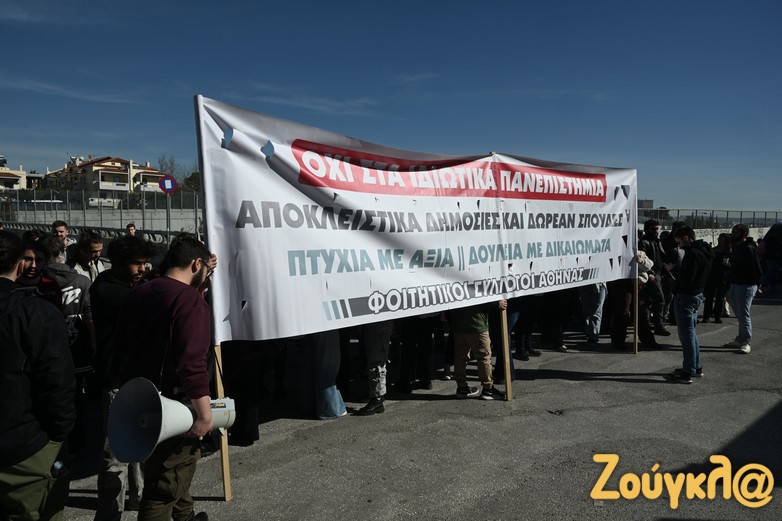 Οι φοιτητές που διαδηλώνουν έξω από το Υπουργείο Παιδείας, φώναξαν συνθήματα κατά της ιδιωτικοποίησης της παιδείας, υπέρ των δημοσίων Πανεπιστημίων, κατά του νομοσχεδίου για τα ιδιωτικά ΑΕΙ και ζήτησαν περισσότερα κονδύλια για την Παιδεία. Παράλληλα έγραψαν και συνθήματα με τα αιτήματα τους.
