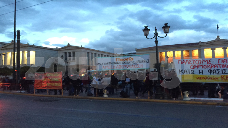 Στα Προπύλαια έχουν συγκεντρωθεί πάνω από 1500 άτομα όπως βλέπετε και στις αποκλειστικές φωτογραφίες και το βίντεο του zougla.gr. Η πορεία έχει ξεκινήσει και κατευθύνεται στο Σύνταγμα. Για το λόγο αυτό αρκετοί δρόμοι παραμένουν κλειστοί για τα αυτοκίνητα.