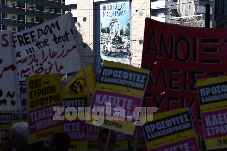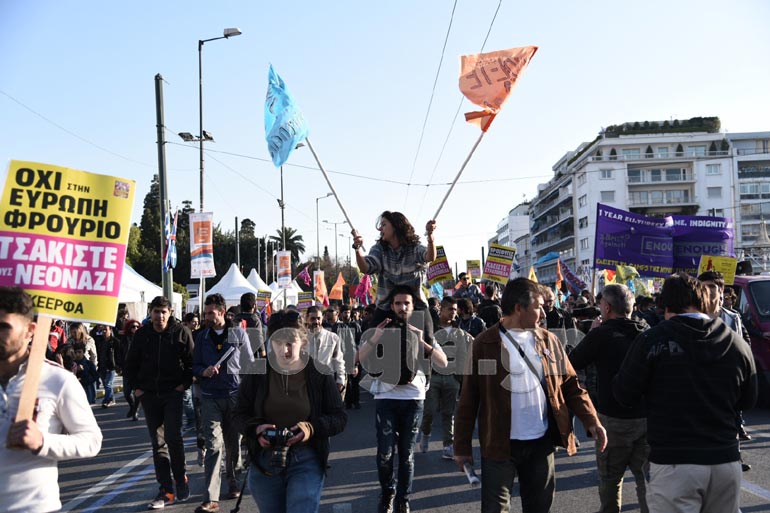 Αντιρατσιστικές οργανώσεις, το ΚΕΕΡΦΑ και διάφορες συλλογικότητες, πραγματοποίησαν συγκέντρωση στην Ομόνοια. Περί τις 17:00 ξεκίνησε πορεία προς τη Βουλή και τα γραφεία της Ευρωπαϊκής Ένωσης στη Βασιλίσσης Σοφίας και το συλλαλητήριο ολοκληρώθηκε μία ώρα αργότερα.