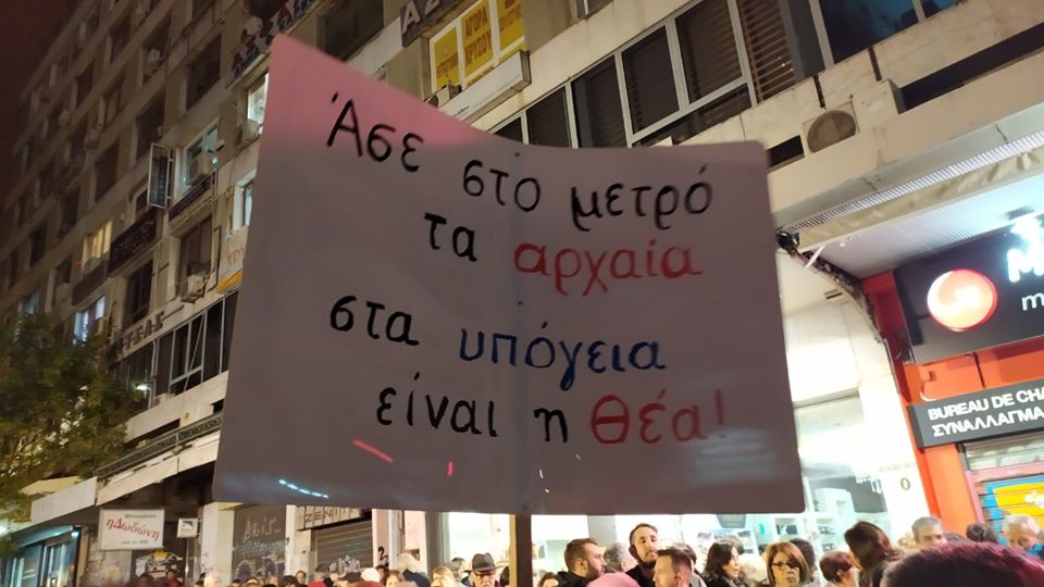 Την αντίθεση τους στην απόσπαση των αρχαιοτήτων από τον υπό κατασκευή σταθμό του μετρό στη λεωφόρο Βενιζέλου, εξέφρασαν οι διαδηλωτές που ανταποκρίθηκαν στο κάλεσμα της Κίνησης Πολιτών Θεσσαλονίκης για την Προστασία της Πολιτιστικής Κληρονομιάς και συγκεντρώθηκαν στη συμβολή των οδών Εγνατία με Βενιζέλου.