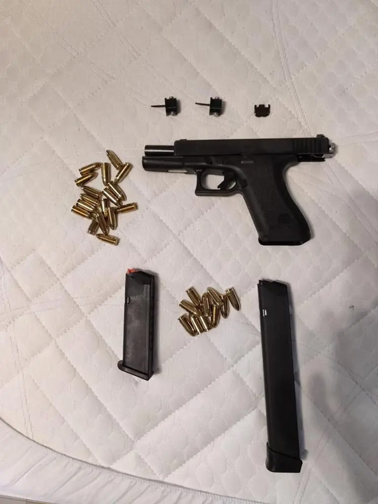 Ένα από τα ευρήματα που τράβηξε την προσοχή των αστυνομικών κατά τη διάρκεια των ερευνών ήταν «ένα πιστόλι μάρκας GLOCK 17 με γεμιστήρα με 17 φυσίγγια και γεμιστήρα με 10 φυσίγγια και 3 κομμάτια κλείστρου για μετατροπή σε αυτόματο όπλο… Φέρει εμφανή ίχνη παραποίησης τα οποία παραπέμπουν σε πιστόλι που κατέχει νόμιμα αστυνομικός» αναφέρουν χαρακτηριστικά τα έγγραφα που έχει στην κατοχή τους ο ανακριτής της υπόθεσης.