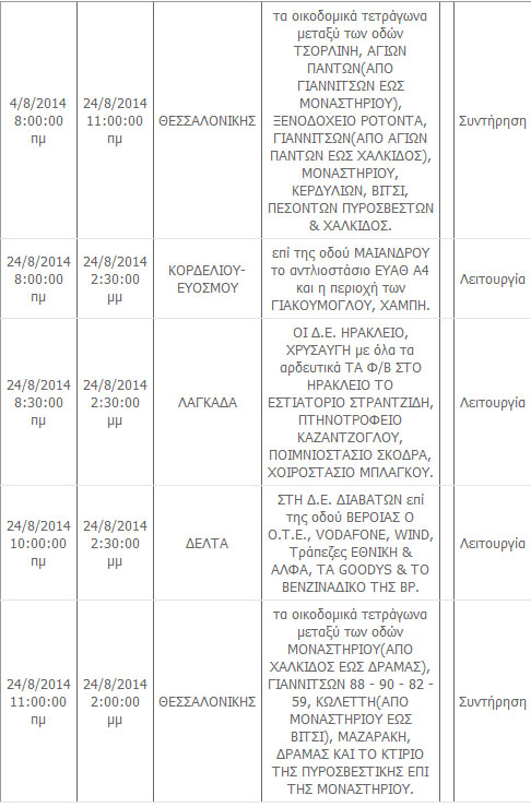 Διακοπές ρεύματος στη Θεσσαλονίκη και σε άλλους τρεις δήμους της πόλης