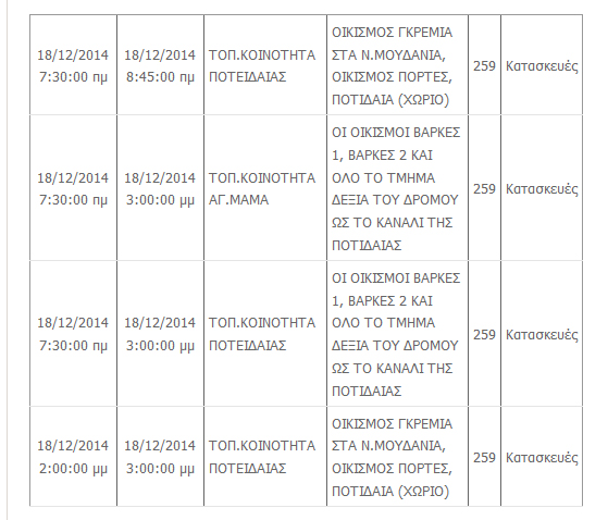 Διακοπές στην ηλεκτροδότηση, λόγω εργασιών, σημειώνονται από τις 07.30 το πρωί σε διάφορες περιοχές της Χαλκιδικής.