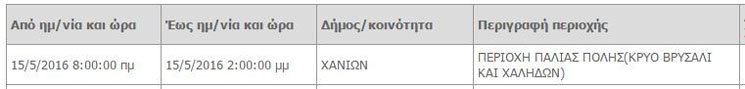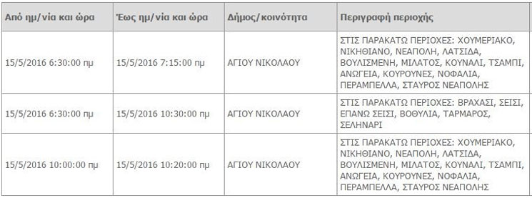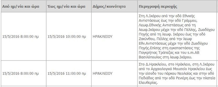Προκειμένου να προγραμματίσετε τις εργασίες σας και να ελαχιστοποιηθεί η όχλησή σας, στον ακόλουθο πίνακα, μπορείτε να ενημερωθείτε για τις περιοχές και τις ώρες προγραμματισμένων διακοπών ηλεκτροδότησης.