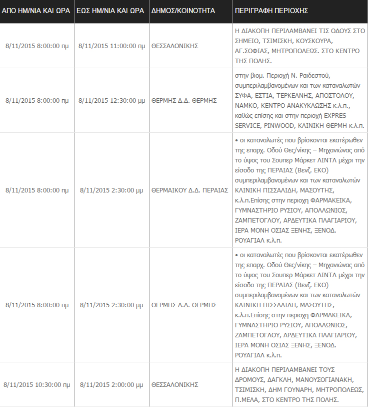 Προγραμματισμένες διακοπές ρεύματος πραγματοποιούνται σήμερα σε περιοχές της Θεσσαλονίκης στο πλαίσιο εργασιών στο τοπικό δίκτυο.