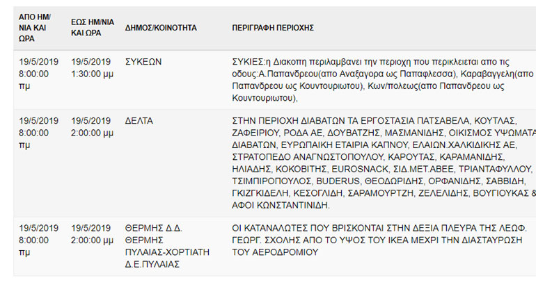 Δείτε αναλυτικά τις διακοπές ρεύματος: