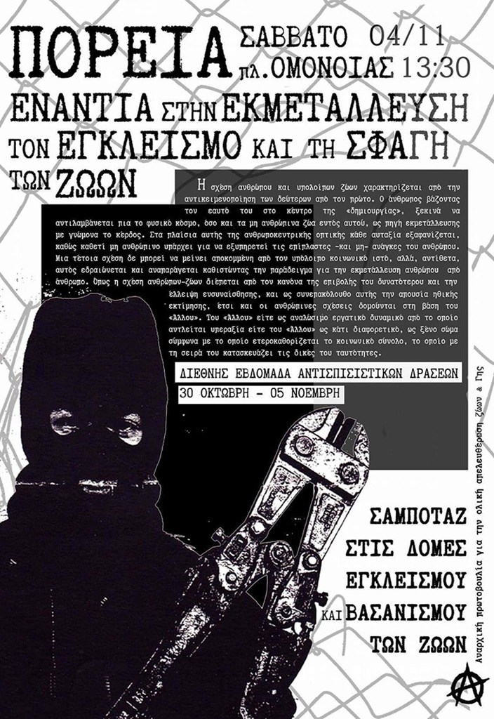 Σε ανακοίνωση τους σε σελίδα του αντιεξουσιαστικού χώρου ανέφεραν σχετικά με το θέμα πως «Για αυτό επιλέγουμε τη φυτοφαγία και τη μη χρήση ζωικών προϊόντων και άλλων που προϋποθέτουν πειράματα σε ζώα, ως μια μορφή άρνησης απέναντι στο σύστημα της εκμετάλλευσης και το βασανισμό των μη ανθρώπινων ζώων. Παρόλο που οι καταναλωτικές μας συνήθειες αντικατοπτρίζουν την εναντίωσή μας στην εκμετάλλευση των ζώων, δεν τρέφουμε αυταπάτες ως προς τα όριά τους. Η συλλογική δράση αποτελεί απαραίτητη προϋπόθεση για να χτυπηθούν οι σχέσεις εξουσίας, οι οποίες δεν περιορίζονται μεταξύ ανθρώπων. Σε αυτά τα πλαίσια προτάσσουμε τη διαρκή σύγκρουση με κάθε βιομηχανία θανάτου και το κράτος που τις στηρίζει».