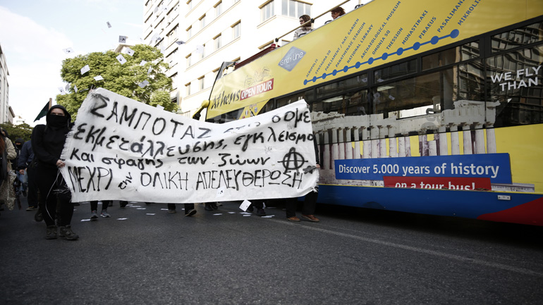 Μάλιστα κατά το τέλος της κινητοποίησης τους οι αντιεξουσιαστες έκλεισαν για λίγο την είσοδο των McDonald’s στο Σύνταγμα φωνάζοντας συνθήματα.