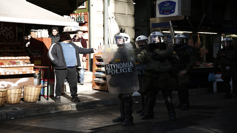 Οι συγκεντρωμένοι, οι οποίοι ανήκουν στον αντιεξουσιαστικό χώρο, πραγματοποίησαν πορεία κατά μήκος της οδού Αθηνάς, προς την Βαρβάκειο αγορά όπου στην είσοδο της πέταξαν φεϊγβολάν το οποίο έγραφε «Κανένα ζώο δεν είναι εμπόρευμα».