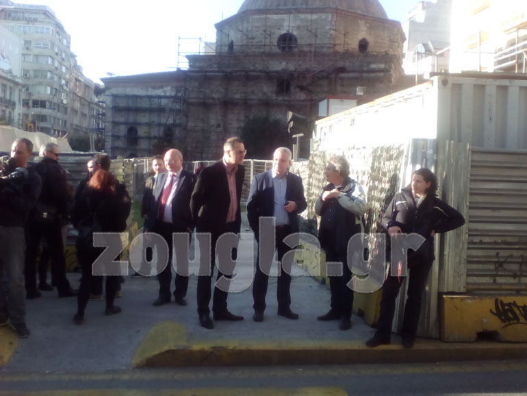 Το εργοτάξιο επισκέφτηκε ο υπουργός Υποδομών, Μεταφορών και Δικτύων Χρήστος Σπίρτζης για να ενημερωθεί για τα αιτήματα των εργαζομένων ενώ στο σημείο μετέβη και ο δήμαρχος Θεσσαλονίκης Γιάννης Μπουτάρης.