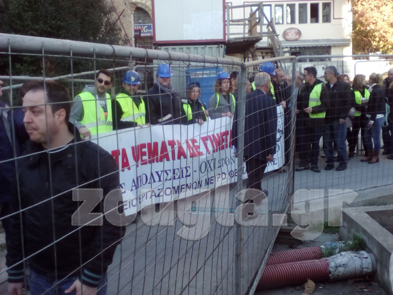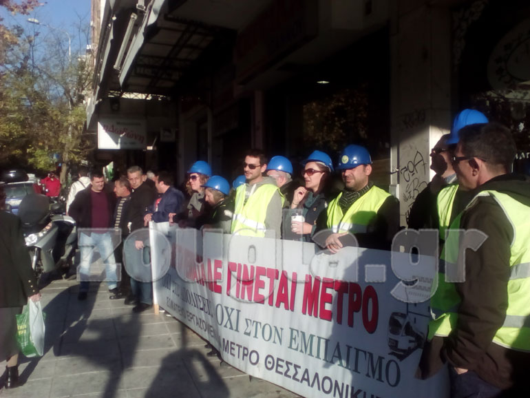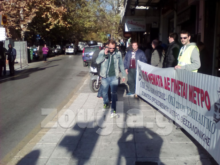 Παράλληλα, παράσταση διαμαρτυρίας στο εργοτάξιο του Μετρό στην οδό Βενιζέλου πραγματοποιήθηκε από το Σωματείο Εργαζομένων «Μετρό Θεσσαλονίκης».