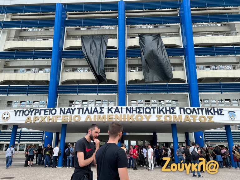 Μαύρες σημαίες κρέμασαν στο υπουργείο Ναυτιλίας οι εργαζόμενοι στη ναυπηγοεπισκευαστική ζώνη Περάματος, διαμαρτυρόμενοι για τον θάνατο του 47χρονου συναδέλφου τους και τον τραυματισμό ακόμη δύο.