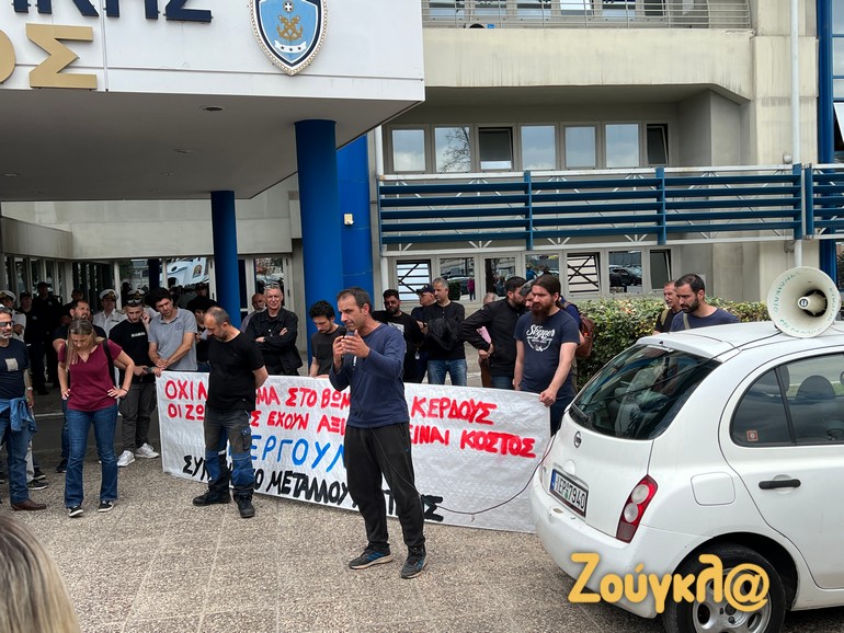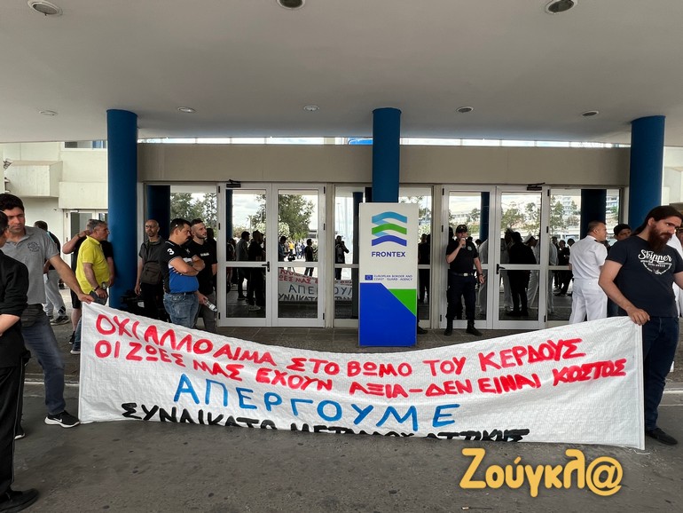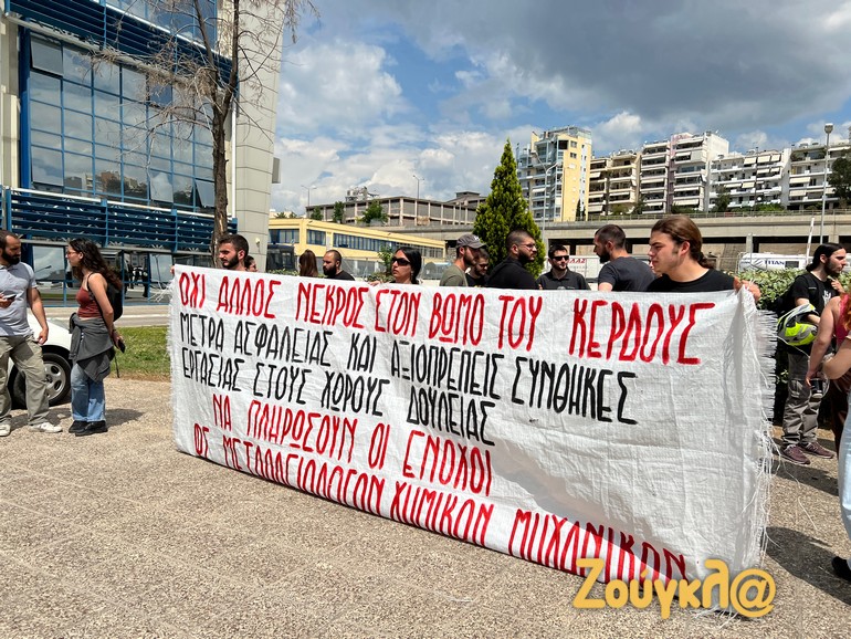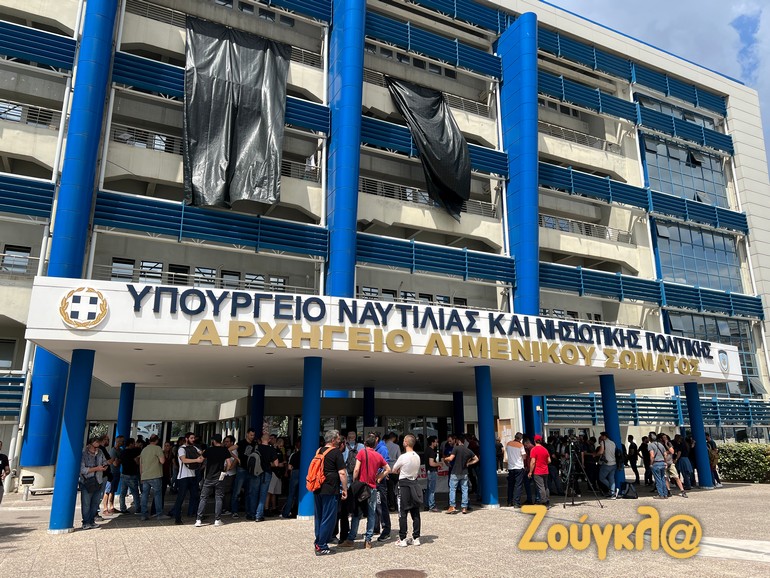 Οι εργαζόμενοι οι οποίοι νωρίτερα είχαν συγκεντρωθεί στην κεντρική πύλης της ναυπηγοεπισκευαστικής ζώνης Περάματος όταν έφτασαν στο υπουργείο Ναυτιλίας, επιτροπή τους ανέβηκε στο υπουργείο και κρέμασαν δύο μαύρα πανό εκφράζοντας την έντονη διαμαρτυρίας τους.