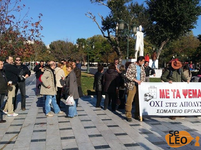 Περίπου 70 εργαζόμενοι στο αρχαιολογικό τμήμα του Μετρό Θεσσαλονίκης πραγματοποίησαν παράσταση διαμαρτυρίας μπροστά στο άγαλμα του Βενιζέλου στο κέντρο της Θεσσαλονίκης, ζητώντας να μην κοινοποιηθούν οι απολύσεις τους.