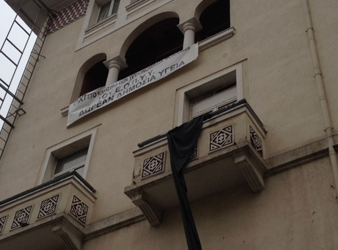 Έξω από τα γραφεία του ΕΟΠΥΥ στην Αριστοτέλους, είναι συγκεντρωμένοι αυτή την ώρα εργαζόμενοι στα δημόσια νοσοκομεία και στον ΕΟΠΥΥ, που διαμαρτύρονται για την αλλαγές που προωθεί η κυβέρνηση στην υγεία.