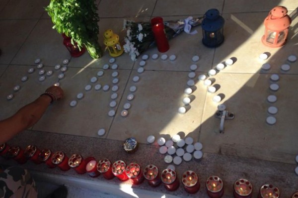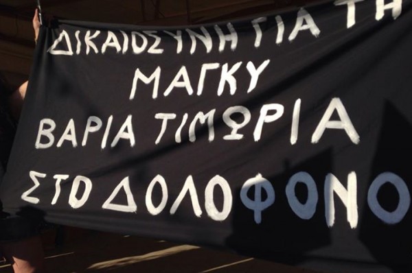 Η μεγάλη συγκέντρωση έγινε έξω από την ταβέρνα του δράστη «Ψησταριά ο Κώστας» ο οποίος κρύβεται για να μην συλληφθεί.